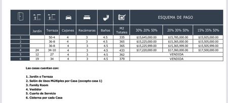Pre-venta de un hermoso Condominio Horizontal, de 6 casas con acabados de lujo Constara de 3 habitaciones con vestidor y baño, sala comedor, terrazas y algunas con jardin,salon de usos multiples por casa, family room cuarto de servicio y sisterna por casa, cuatro estacionamientos. Para entregarse en 1.5 años. caseta de vigilancia.