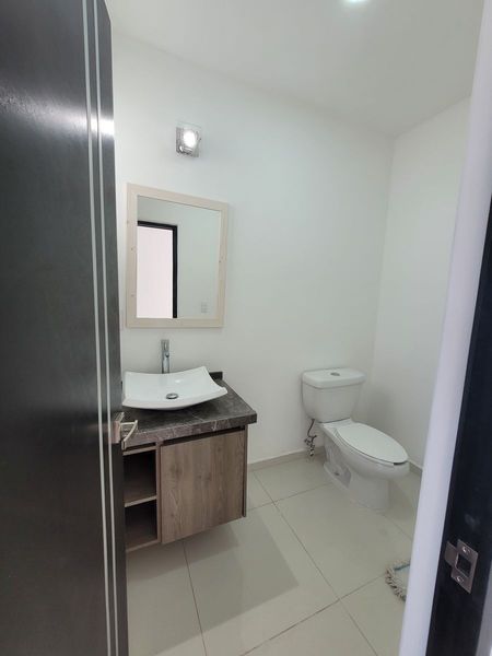 La recamara secundaria en el primer piso tiene baño completo y closet.