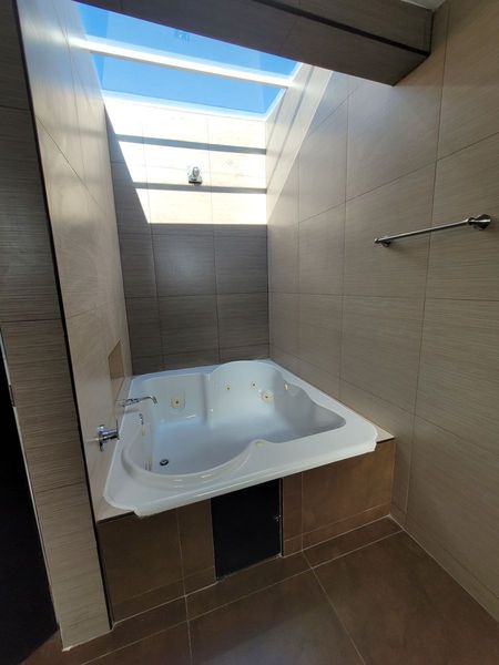 También cuenta con jacuzzi separado de la regadera y terraza con vista a alberca.