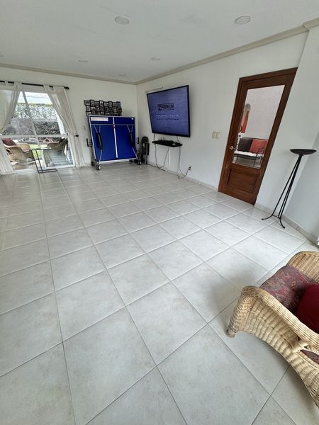Al lado izquierdo, Se encuentra el salón de juegos y usos múltiples con puertas que se abren tanto a un jardín lateral en escuadra, como al jardín frontal panorámico. Cuenta con medio baño de visitas.