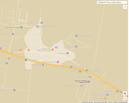 Este predio se encuentra estratégicamente ubicado en una zona de alto crecimiento y reconversión económica, a pocos minutos de la emblemática Hacienda Teya y la Estación del Tren Maya.