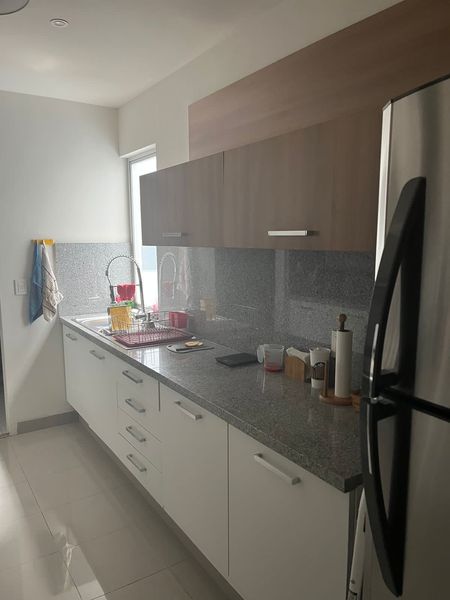 El departamento cuenta con 2 recámaras, family room., cocina con cubierta de granito y área de lavado, área social con vistas exteriores.
