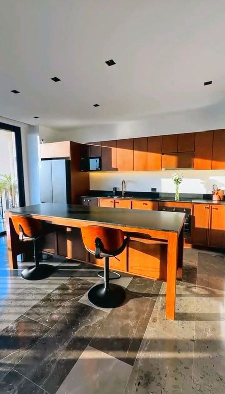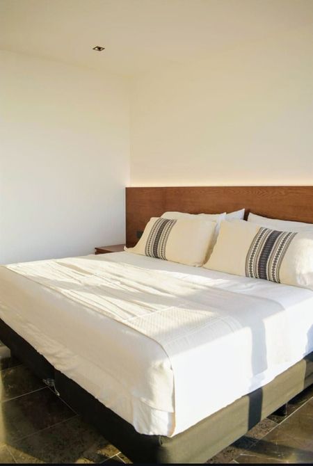 -Recamara principal: cama King size, mueble de TV y TV de 75 pulgadas, cabecera y buros.