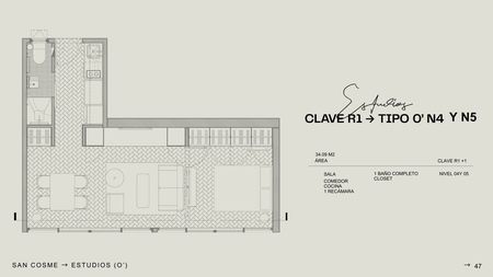 Departamento 1 recamara 1 baño 1 estudio en San Rafael