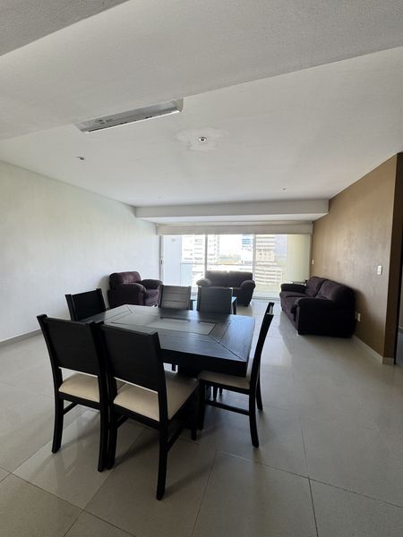 Torre RIO, Segundo piso, Amueblado , Dos recamaras con closet, , 2.5 baños, sala, comedor, gran terraza, cocina equipada, alacena, cuarto de lavado, protección anticiclónica, 2 lugares de estacionamiento, Amplios espacios, espectaculares vistas y amenidades: Gym, alberca, grill, salon de usos múltiples, acceso directo a plaza malecón.