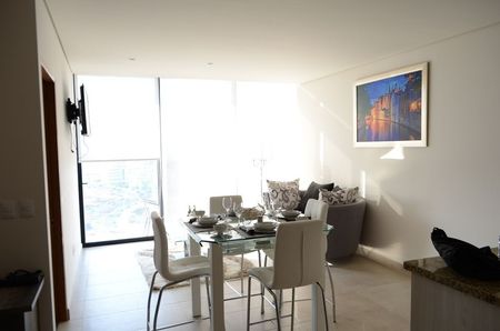 ¿Necesitas instalarte con todas las comodidades que derivan de una buena ubicación, así como amenidades tales como sky lounge, alberca, gimnasio, ludoteca y bussines center?