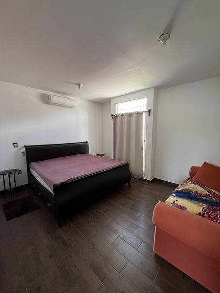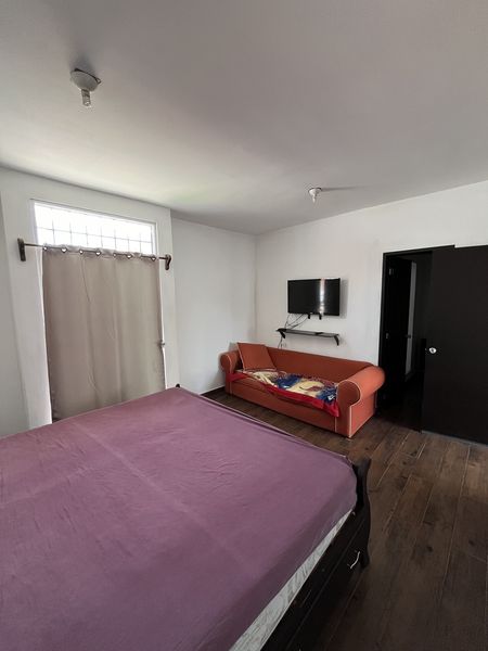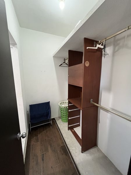 Una sola recámara con cama matrimonial, un sillón pequeño, pantalla de televisión, minisplit, vestidor y baño completo.