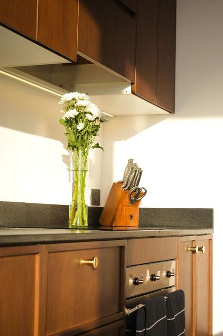 - Horno de convección, parrilla de inducción, campana extractora y doble tarja en cocina marca italiana SMEG.