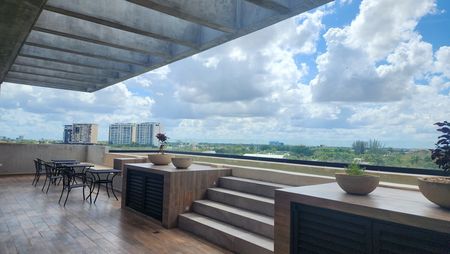 El departamento cuenta con area social, cocina, una recamara, baño completo, balcon y esta completamente vestido