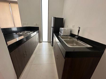 - Cocina equipada con refrigerador, parrilla electrica, horno de microondas, barra desayunadora de granito