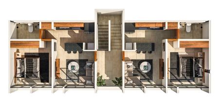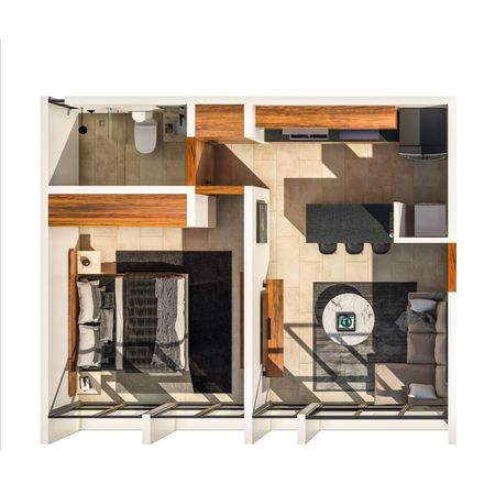 El complejo estará conformado por únicamente 6 departamentos; el modelo Colmena se caracteriza por tener la opción de encontrarse en el segundo y tercer nivel de la torre con una amplia habitación con área de clóset.