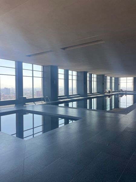 En edificio cuenta con : bar, sky pingue , Terrazas panorámicas , co working , coffee bar, pet spa , alberca con carriles de nado , jacuzzi, salas de masaje, beauty bar , barbería, spinning, gimansio cardio , gimnasio peso libre , salón de eventos con cocina , ludoteca .