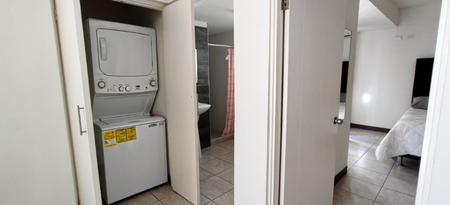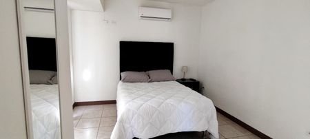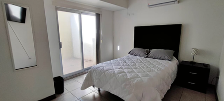 El departamento está amueblado y equipado, es de una recámara, baño completo, cocina integral equipada con estufa y refrigerador, 2 mini splits ( frío - calor), sofa cama, lavadora-secadora, 2 pantallas de tv, tiene entrada independiente, patio pequeño y cochera eléctrica.