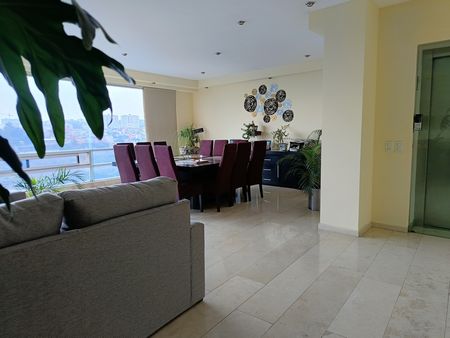 Impecable departamento de 240m que consta de 3 recámaras cada una con baño y vestidor, sala, comedor, baño de visitas, cocina, área de lavado, cuarto de servicio, 2 cajones de estacionamiento y bodega. Cuenta con elevador que llega directo al departamento.