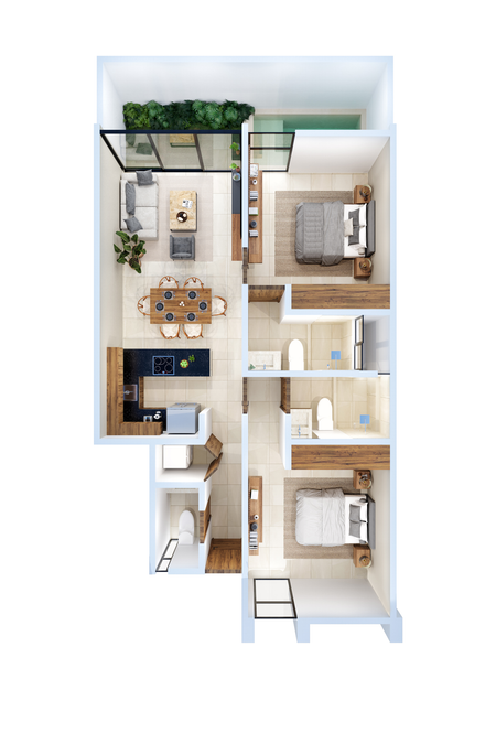 Son 38 departamentos ubicados en Santa Gertrudis Copo, una las zonas de mayor plusvalía en la zona norte de la ciudad. A tan solo 3 minutos del periférico de Mérida, ofreciendo una gran cercanía a los mejores centros comerciales de la ciudad como La Isla, City Center y Altabrisa, al igual que universidades, colegios, restaurantes y hospitales de la mayor calidad.