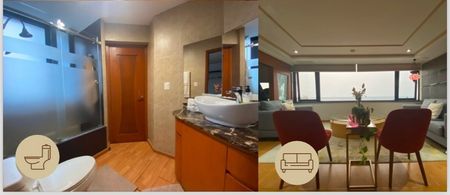-2 1/2 baños con cancel de vidrio templado y azulejos Interceramic.