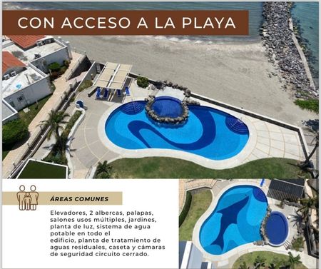 Elevadores, 2 albercas, palapas, salones usos múltiples, jardines, planta de luz, sistema de agua potable en todo el