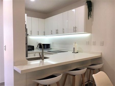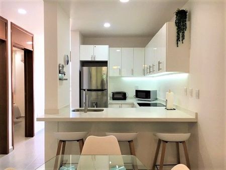 Esta unidad cuenta con área de lavado, Cocina integral con barra de granito con parrilla y campana, área de sala, comedor, terraza con vista al faro.