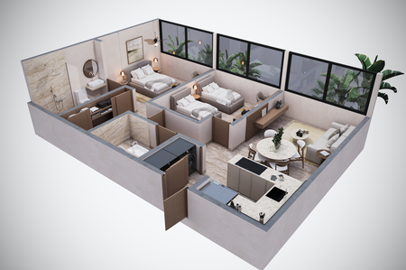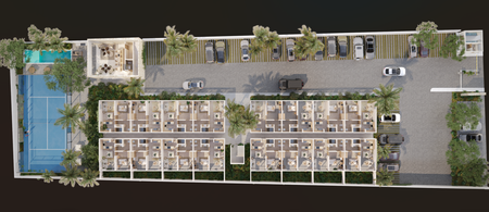 Dianela, un complejo de 3 niveles con 48 departamentos de 1 recámara y 2 recámaras.