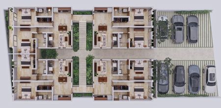 El complejo consta de 8 departamentos de 2 recámaras desde 61 hasta 70 m2.