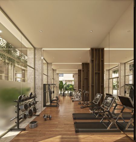 Los 25 módulos se distribuyen en dos manzanas con áreas de amenidades centrales que incluyen albercas, canal de nado, gimnasio, cancha de pádel, business center, bar, ludoteca, cuarto de juegos, zona grill, parque lineal y mucho más.