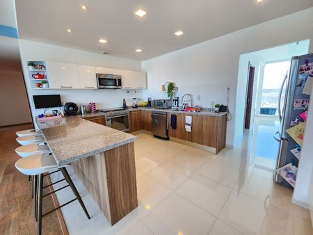 - Área de desayunador o lo puedes adaptar de sala de juegos con bar, ya que tiene un balcón con vista a la ciudad.