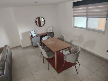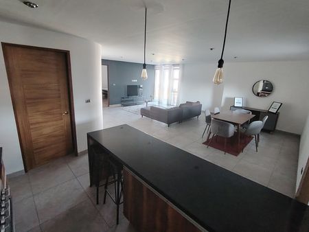 Es un departamento acogedor, por su acceso y la construcción del edificio estratégica, no da el sol, así que la entrada siempre estará a temperatura agradable. Está iluminado, al entrar encontrarás la cocina a mano izquierda equipada, con horno de microondas y estufa completa y una barra. También cuenta con cuarto de lavado, lavabo y con una lava secadora. Tiene un comedor con 6 sillas y una sala con una TV. Cuenta con dos recamaras espaciosas con closet completo cada una y con una base y colchón. Al lado de cada cuarto hay un baño completo. Ambos cuartos dan al balcón.