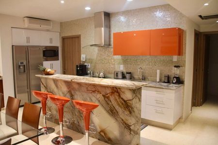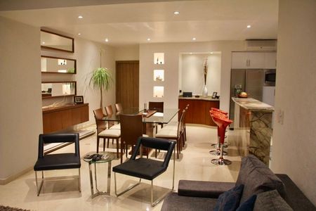 Con ubicación privilegiada Plaza Residences, con vistas panorámicas en todas las direcciones (270 grados) con 5 departamentos por piso con área de recepción, concierge y vigilancia las 24 horas con todos los servicios de alta calidad muy cercanos, el departamento está en el piso 22 con poca sonorización y privacidad por la altura, es el último departamento que casi no comparte paredes con otros vecinos. El equipamiento son pisos españoles de mármol, la cocina integral italiana es abierta con barra e isla de quarzita romana importada con mecanismos de importación, tiene aire acondicionado en todas las áreas, ventilación natural, baños con alta presión y acabados de mosaicos españoles. Cuenta con dos recámaras, la principal con walk in closet y baño completo, la segunda tiene closet y comparte baño completo con el área social. Las amenidades son Gym, alberca techada, vapor, sala de masajes, ludoteca, sala de juntas, sala de cine, terraza, sala con mesa de billar y bar. Tiene la posibilidad de venderlo amueblado, es ideal como inversión, actualmente está rentado en $56,000 pesos.