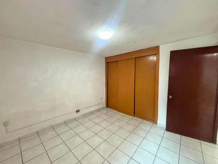 La propiedad cuenta con dos recámaras con clóset, un baño completo y un área de lavado independiente. Sus interiores ofrecen pisos de loseta cerámica, muros con acabado texturizado y recubrimientos de mosaico en cocina y baño. El plafón liso con detalles decorativos y la carpintería de madera en clósets y cocina aportan un estilo cálido. Gracias a sus ventanas, la estancia y las recámaras reciben abundante luz natural y ventilación.