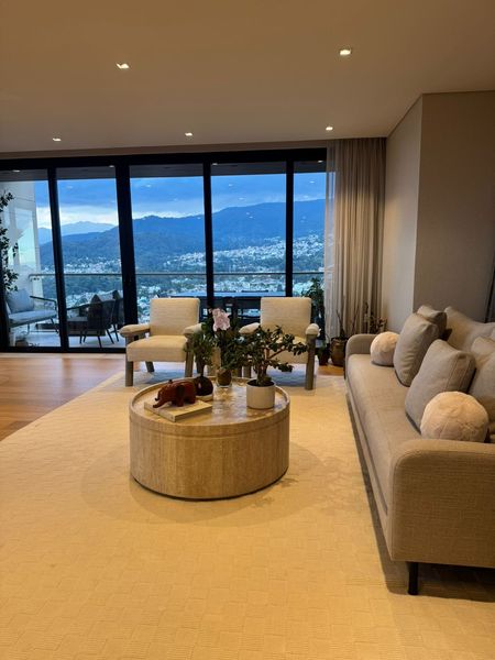 El departamento amplio, iluminado, pisos de madera, mármol, cristal templado y acabados de lujo.