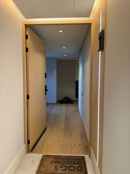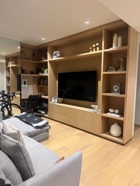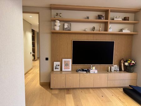 El departamento cuenta con un increíble proyecto de carpintería en sala de TV, cortinas eléctricas y papel tapiz.