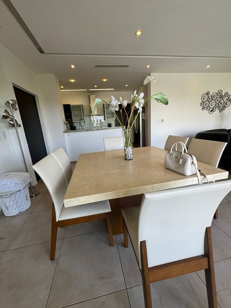 Este departamento cuenta con 2 recámaras y 3 baños, incluyendo uno en el cuarto de servicio, todos los miembros de la familia disfrutarán de privacidad. La sala-comedor, amplia e iluminada, conecta con una hermosa terraza y balcón con vistas espectaculares, ideal para relajarse.