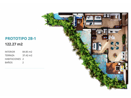 Una playa interna con agua del manto friático de 8000 m2 (nunca tendrá problemas de sargazo)y otra en un club de playa a 8 minutos que mide 5000 m2