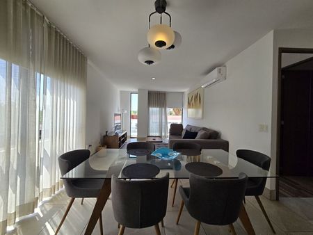 Cuenta con aire acondicionado en sala y recámaras, excelente iluminación y ventilación natural, estacionamiento techado para dos autos y pantallas planas en la recámara principal y sala.