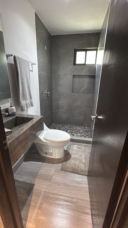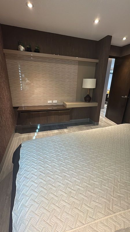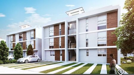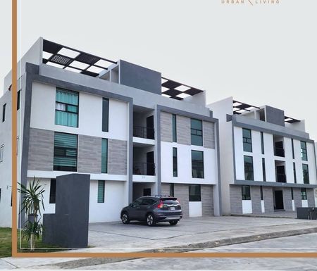 con dos recamaras, dos baños, y dos cuadros de estacionamiento.