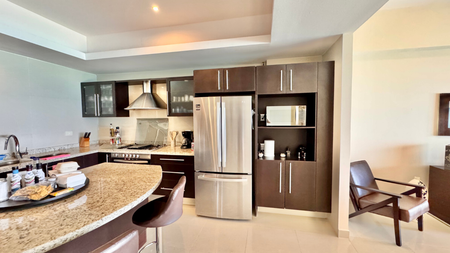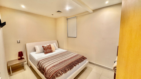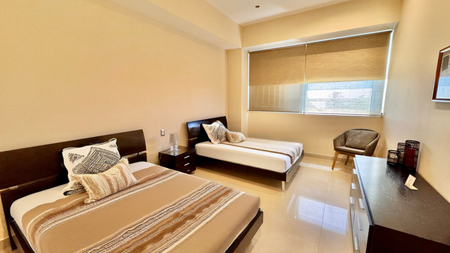 Ubicado en el quinto piso, ofrece impresionantes vistas al Mar Caribe, la Laguna Nichupté y una reserva natural protegida. Su orientación esquinera maximiza la entrada de luz natural y la ventilación cruzada, brindando amplitud y confort.
