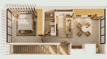 Monca estará compuesto por 20 departamentos distribuidos en una torre de dos niveles, cada uno diseñado para maximizar tu comodidad y privacidad. Los departamentos, todos de una habitación se caracterizan por sus espacios bien distribuidos así como tener la opción de ubicarse en planta baja con área de jardín.