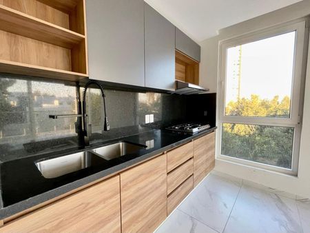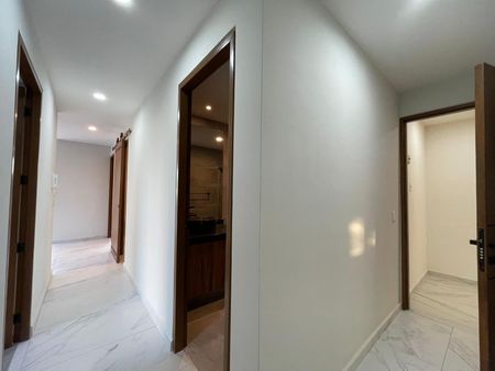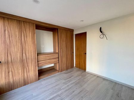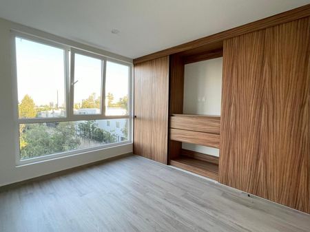 El departamento cuenta con 84.74 m² dis tribuidos en una cocina integral con cubierta y splash de granito, sala-comedor con ventanales de gran formato y amplio balcón, 2 recámaras con closets y 2 baños completos con cristal templado, muebles de cerámica rectificada, cubiertas y ovalines de granito. Además, tiene un cuarto de lavado con calentador de agua, instalaciones y espacio para lavadora, secadora y lavadero, equipado con una puerta corrediza de rieles de metal que ahorra espacio. Estacionamiento subterráneo para 1 auto. Acabados de carpintería en madera con detalles en melamina, instalaciones para A/C, pisos de porcelanato de gran formato y duela.