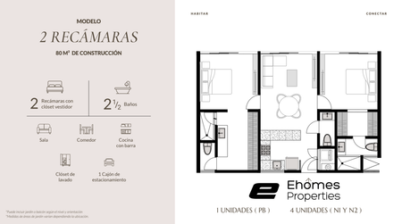 2 recámaras 79m2 desde $2,730,000 MN - $2,900,000 MN