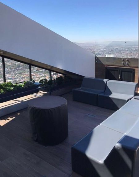 Departamento en venta en la zona residencial de mayor prestigio y seguridad en Querétaro, cerca de escuelas, universidades y zonas comerciales. Amenidades de lujo: Se cuenta con alberca techada y climatizada, salon de juegos, áreas verdes, asadores, roof garden con vista, salon de eventos, recepción con área de conserje, gimnasio con vista, salas de juntas salas de yoga, vapor, sala de videojuegos, terrazas con vista seguridad las 24 hrs. Cuenta con circuito cerrado. El departamento tiene acabados de lujo con maderas, mármoles, granito, cristal templado, ventanería térmico acústica. 2 recámaras, 2 baños completos, 2 lugares de estacionamiento, sala, comedor, cocina equipada, cuarto de lavado.