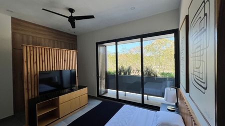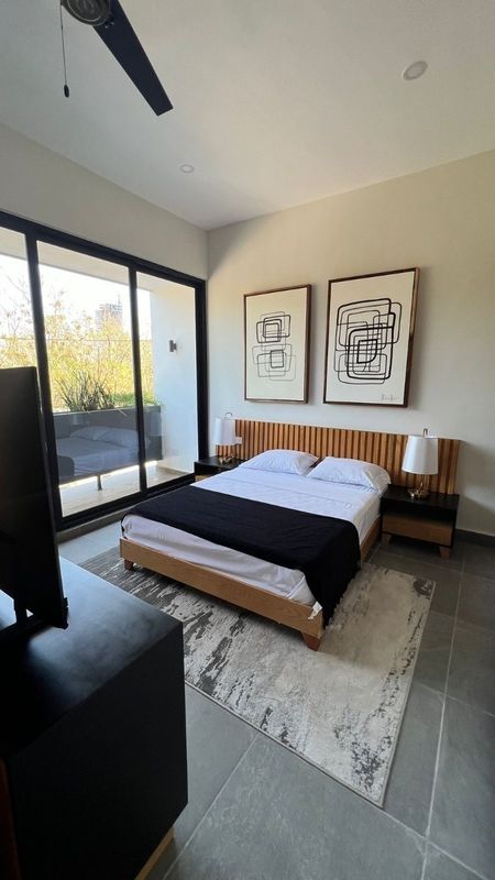 Recámara con clóset vestidor, baño completo y área de home office.