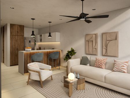 Descubre un exclusivo complejo de departamentos dentro de una privada residencial con amenidades de lujo y acceso a todas las áreas exclusivas. Modelo 1 – 1 Recámara | 42.5 m²