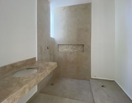 - Meseta de piedra travertino Puebla en lavabo