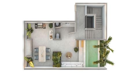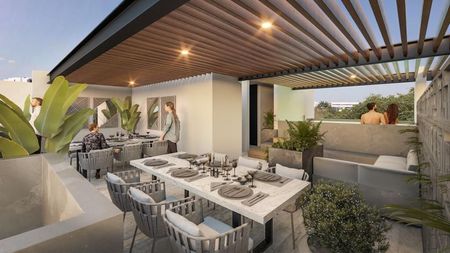 - Rooftop privado con alberca, área lounge, medio baño y tarja (modelo suite).