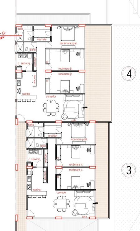 El desarrollo tiene 4 departamentos por piso, 7 pisos en total