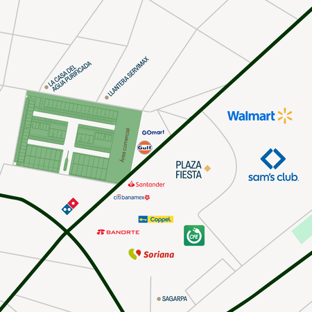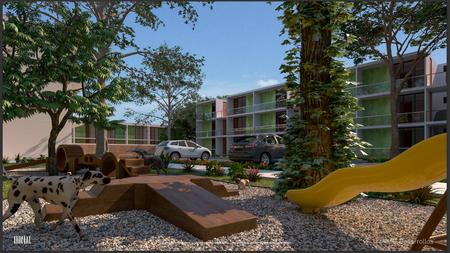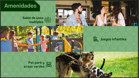 Complementos: caseta de vigilancia, cajón de estacionamiento, juegos infantiles, área para mascotas.