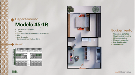 El proyecto cuenta con departamentos de 45M2 y 69M2 y Townhouses de 134M2 todos incluyen: