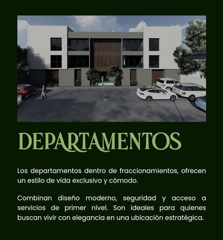 Vive o invierte en un espacio diseñado para brindarte lujo, comodidad y plusvalía garantizada. Estos 6 departamentos exclusivos combinan diseño moderno, acabados premium y la tranquilidad de contar con seguridad 24/7, en un fraccionamiento residencial de alta demanda, cerca de los principales centros comerciales de la ciudad.