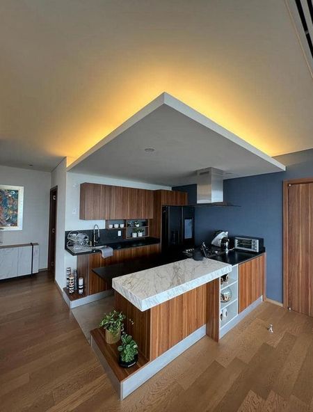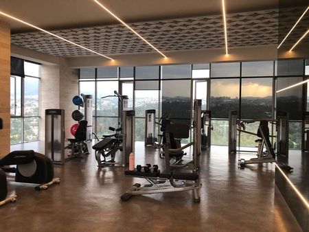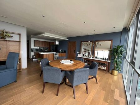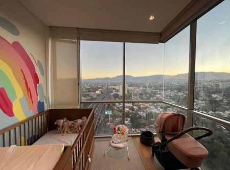 Tiene cubierta de granito en la cocina,cristal templado en cancelería, pisos de madera de alta ingeniería y persianas en todo el departamento. La renta es con mantenimiento incluido
