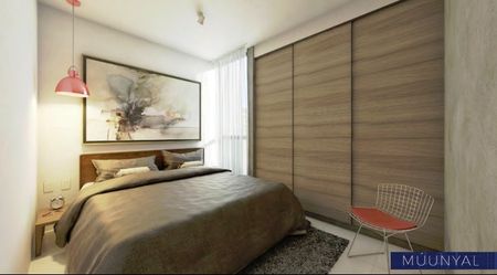 MÚUNYAL cuenta con un modelo, “Departamento tipo”, variando solamente los ubicados en la planta baja los cuales incluyen una pequeña área exterior en estancia como remate decorativo . Todos tienen una excelente orientación norte-sur y consta cada torre (1, 2, 3 y 4) de 3 niveles